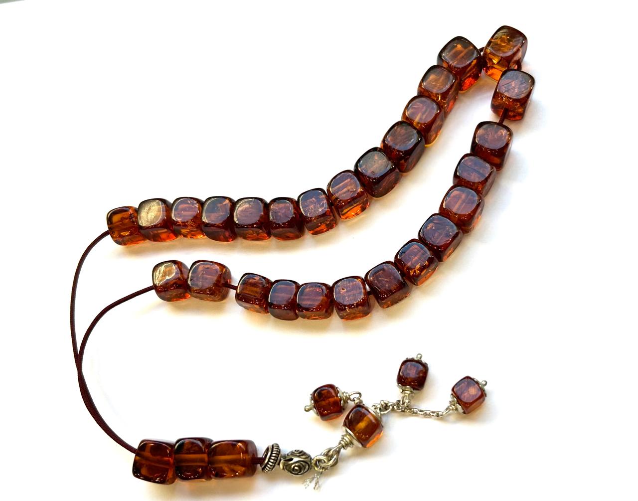 hand made komboloi withe silver 33 beads 37 grams withe silveramber